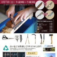 3月7日(土)、マルイウエストランド店にて「刃物研ぎ」開催!